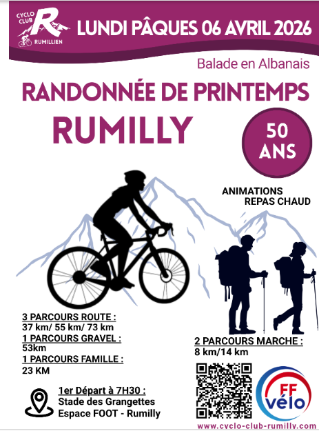 >> Le départ sera donné à partir de 7H30 jusqu’à 10H00 depuis le stade de Foot des Grangettes à Rumilly.