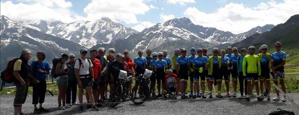 Une quinzaine de randonneurs de Ski Montagne montaient au Col du Joly en voiture, pour faire une petite randonnée matinale sur la crête des Aiguilles Croches, en attendant les cyclos partis d’Albertville. Quant à moi, n’étant pas une cyclo chevronnée, je partais d’Hauteluce sur mon VTC à assistance électrique, accompagnée d’Aurélien, fils ainé de Jean Paul, sur le VTC de son père.