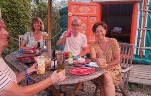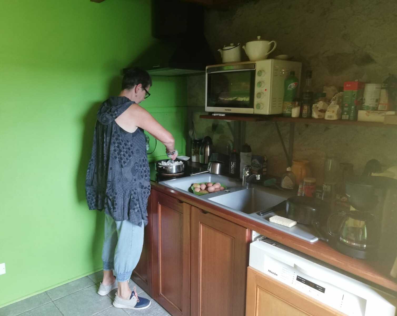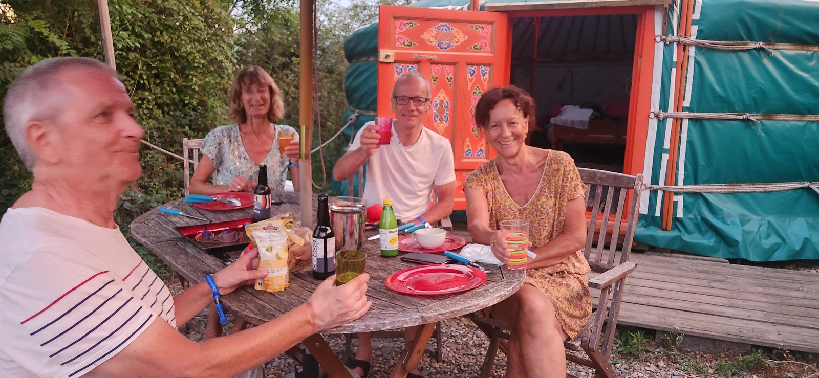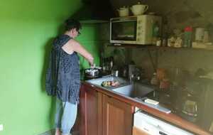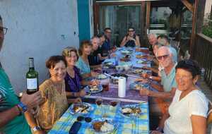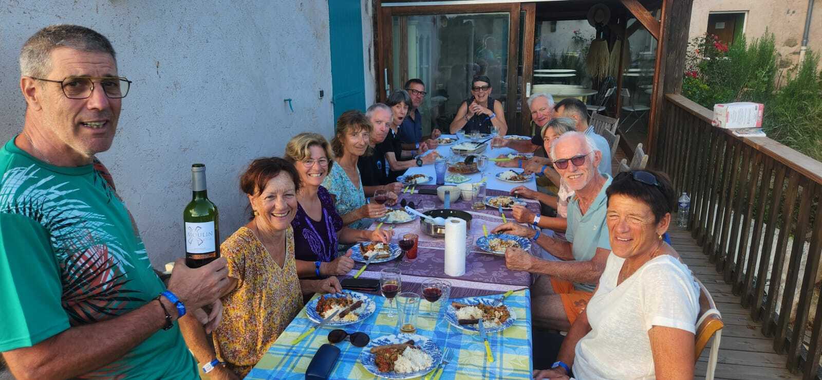 La vie au gîte : Nous avons pris rapidement nos marques, le gîte nous convient, il est fonctionnel, c’est le principal. Nous ne manquons de rien, ne dérangeons personne, les dîners sont copieusement servis et arrosés, l’euphorie nous gagne, pas de souci, après c’est dodo.
