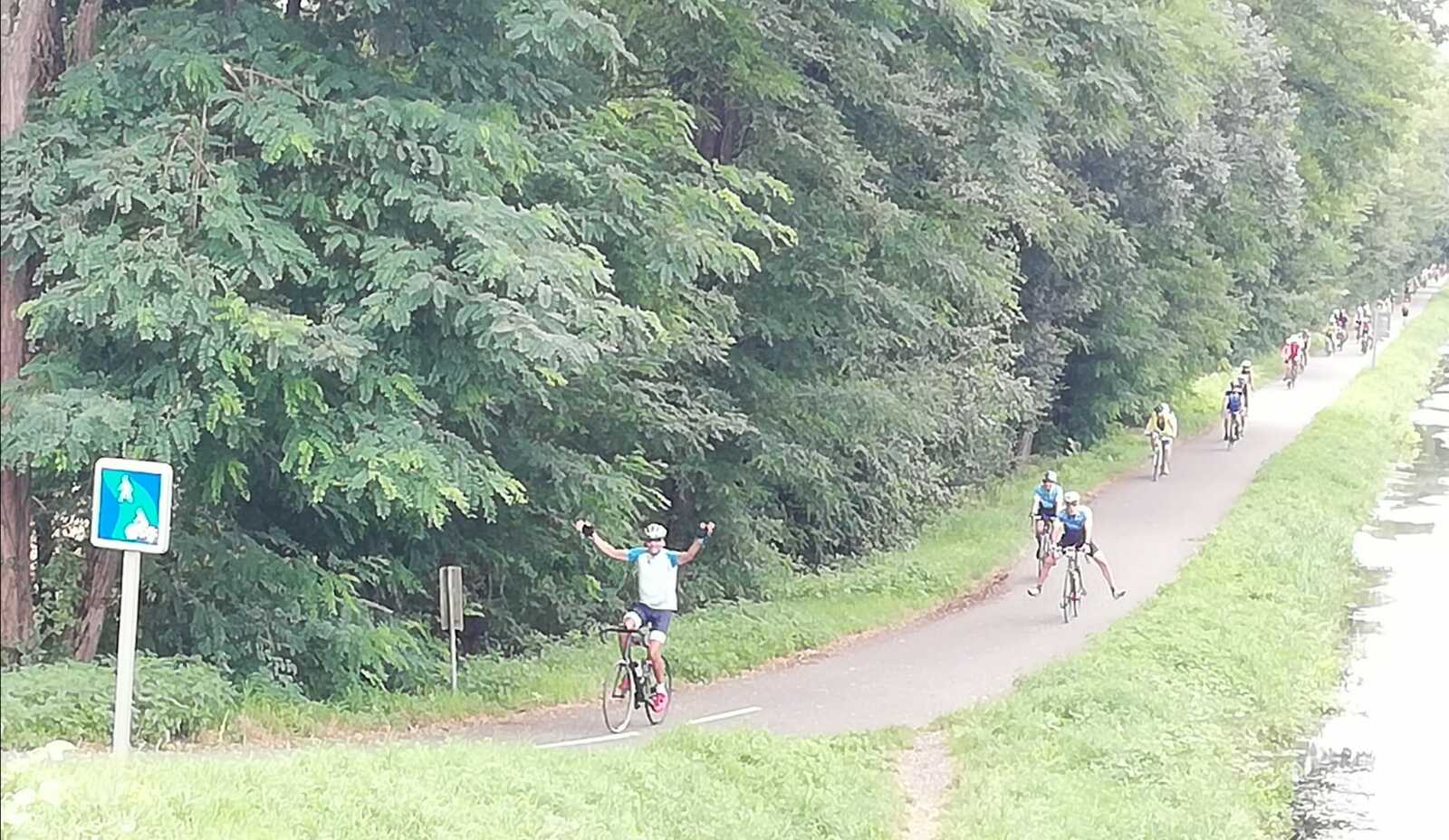 Les circuits s’enchaînent, un jour, le long de la Loire, un autre, sur les coteaux vallonnés avec ses parcs à vaches, cultures, forêts, traversées de villages…Nous pédalons dans la bonne humeur, ensemble ou se regroupant en haut d’une côte, décidant de s’arrêter au point d’accueil ou de passer au suivant pour retrouver ceux qui faisaient une boucle supplémentaire, nous repérant facilement avec nos maillots.