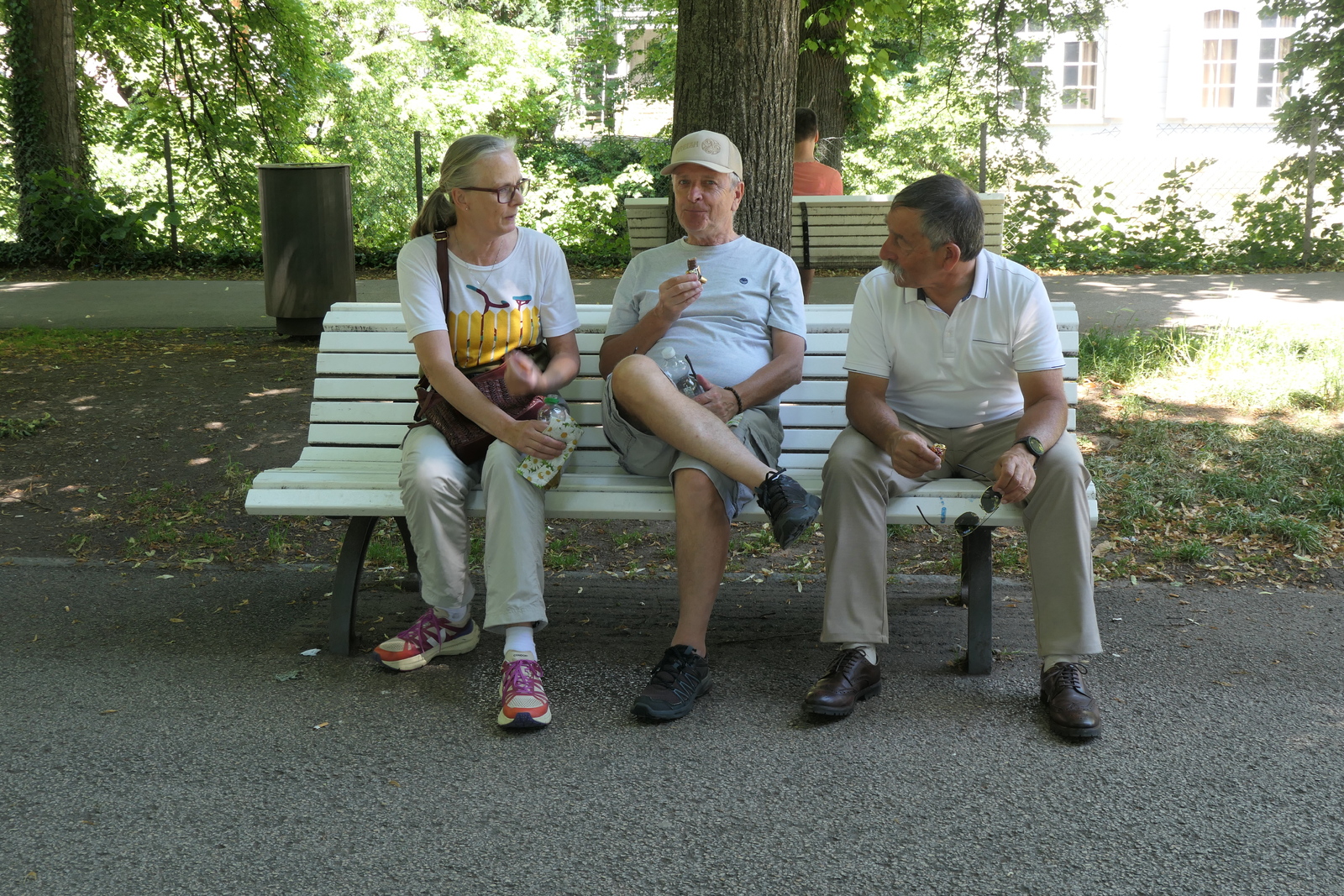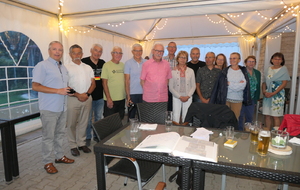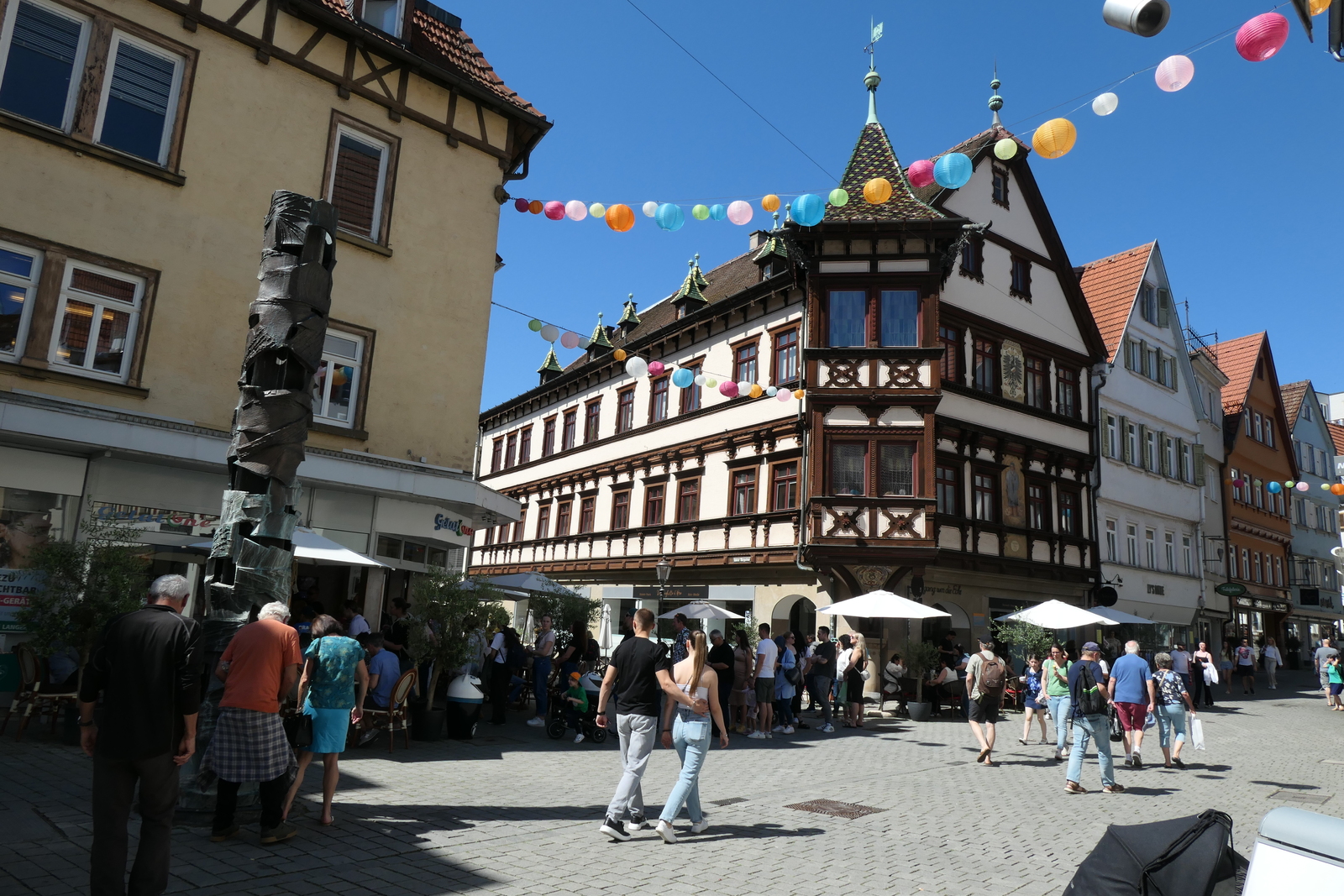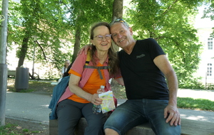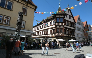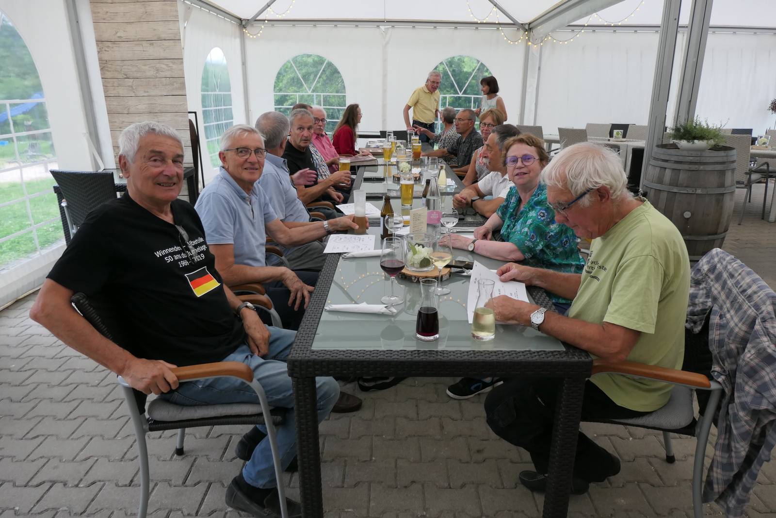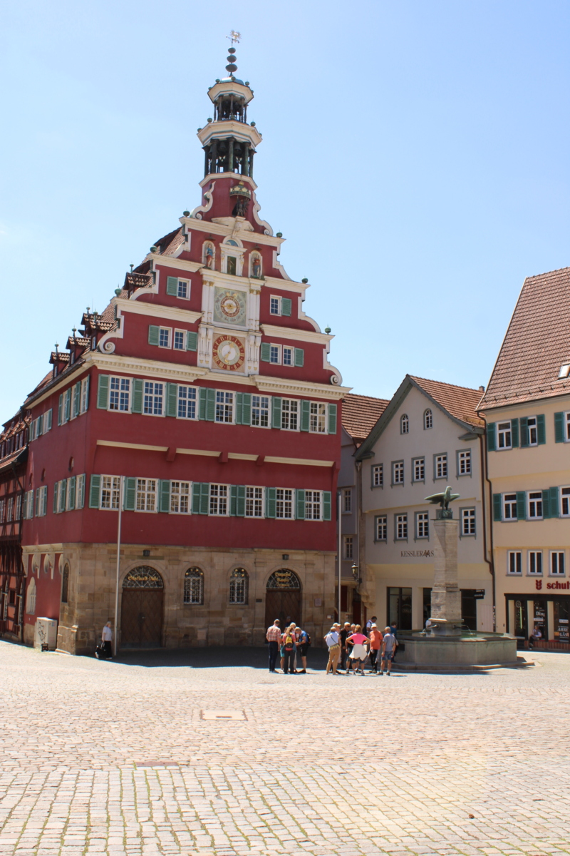 Cette année 2 groupes rejoignent Winnenden : 4 cyclistes partis le dimanche 25 mai en 5 étapes à travers la Suisse et l’Allemagne et arrivés le 29 mai vers 16h30, et 2 minibus avec 7 passagers partis à 8h00 d’Albertville voyageant par Annecy, Genève, Berne, Aarau, Schaffhausen, Stuttgart arrivés à 18h30 le même jour. Nous prenons l’apéritif avec nos amis allemands (Alexandra, Charlotte, Barbara et Samuel, Rudy, Rainer) sur la rue « Albertviller strasse », avant de dîner dans les familles. Nous sommes 7 à loger à l’hôtel « pension Römerhof » à Burgstetten petite localité à la campagne près de Winnenden. Le programme du vendredi nous conduit dans la très belle ville de Esslingen pour une visite guidée des ses places et églises et une dégustation de vin mousseux méthode champenoise de la maison Kessler. L’après-midi nous, nous promenons à Weinstadt qui porte bien son nom avec des vignes en pentes impressionnantes, mais la chaleur empêche les plus valeureux de rejoindre le sommet des centaines de marches qui conduisent au sommet. Ensuite soirée italienne à la Pizzeria Rubino de Burgstetten, où ceux qui ne parlent pas allemand peuvent communiquer en italien pour choisir leurs pâtes, pizza, poisson, bruschetta.