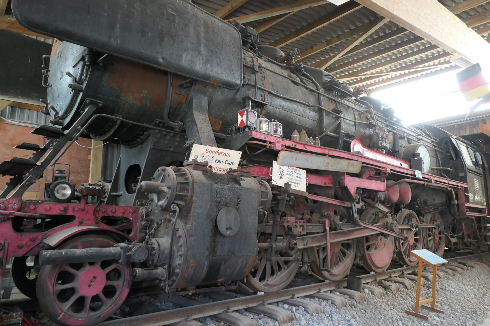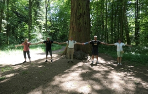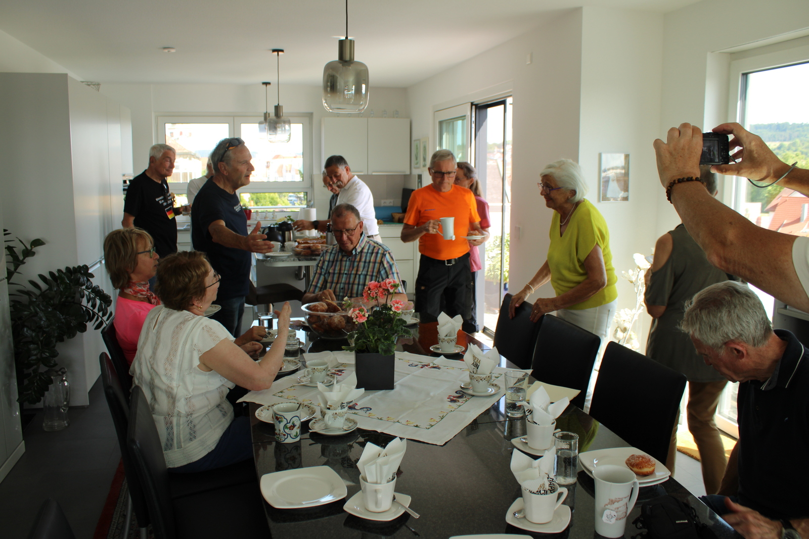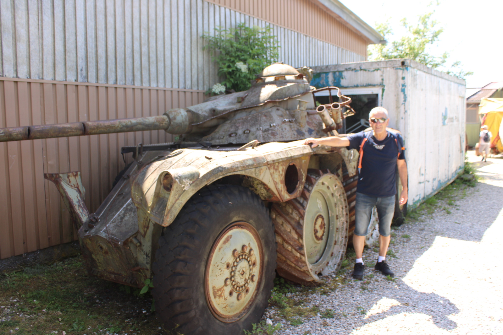 Le samedi c’est un musée privé à Eschach-Seifertshofen qui nous fait remonter dans le temps avec des voitures, des tracteurs, des avions, des véhicules militaires et même une tour Eiffel en bois et des objets de toutes les époques. Michel retrouve même le tank sur lequel il a fait son service militaire, certes en mauvais état. Nous pique-niquons sur place, avant une promenade sur le chemin du retour à Welzheim Wanderparplatz Wellingtonien. Là nous retrouvons une forêt avec des séquoias plantés en 1866 pour le roi Wilhelm 1ier (Guillaume 1ier roi de Prusse) dont le diamètre impressionnant est mesuré par 5 personnes sous le contrôle de Michel. Une petite promenade en forêt nous permet de prendre l’air sur les chemins qui conduisent à l’ancien mur maintenant détruit qui séparait l’empire romain des peuplades environnantes. Ensuite nous sommes invités pour le goûter chez Charlotte et Werner dans leur magnifique appartement au dernier étage avec une très belle vue circulaire sur Winnenden.