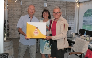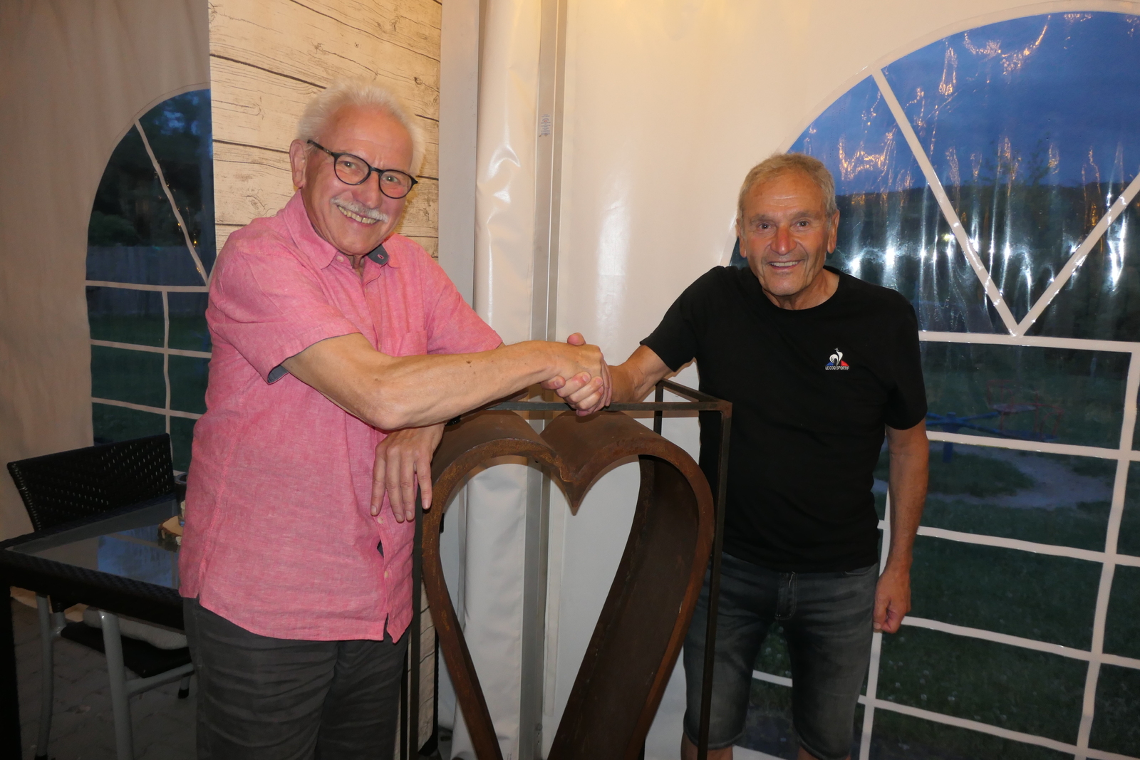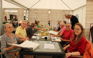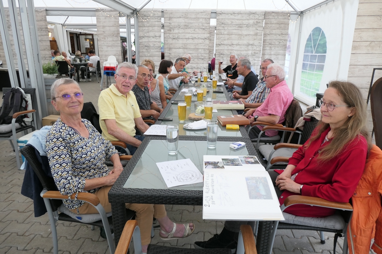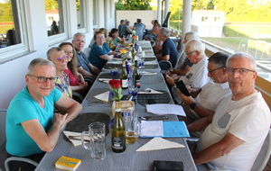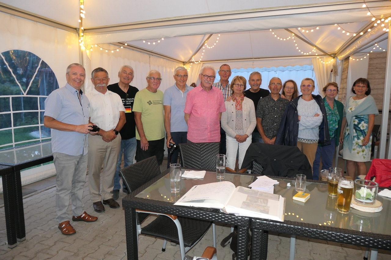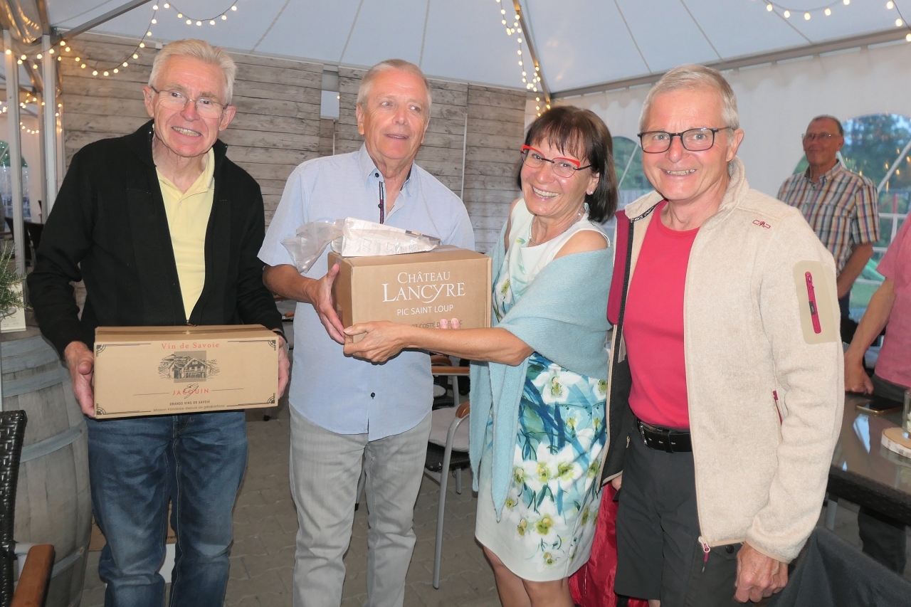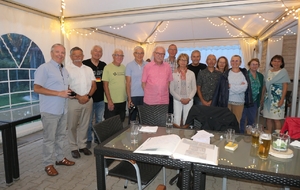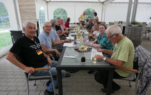 Nous dégustons la cuisine allemande au restaurant Shützenhaus Ödernhardt et terminons la soirée par la remise des traditionnels cadeaux : bière, vins, Beaufort, et les discours des correspondants jumelage des 2 clubs.
