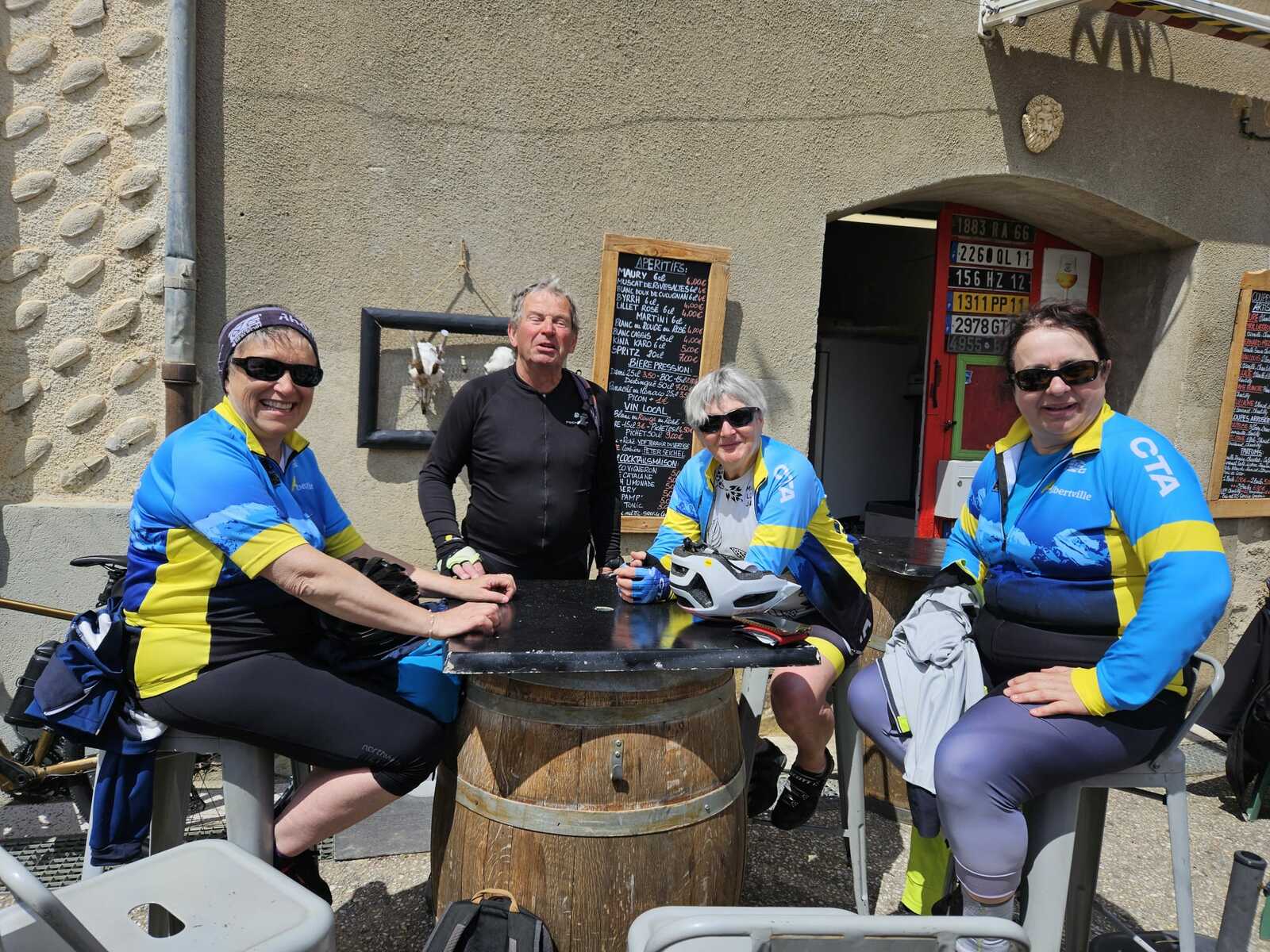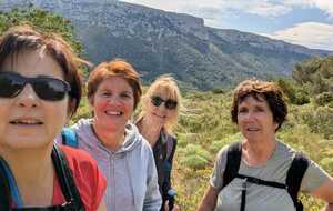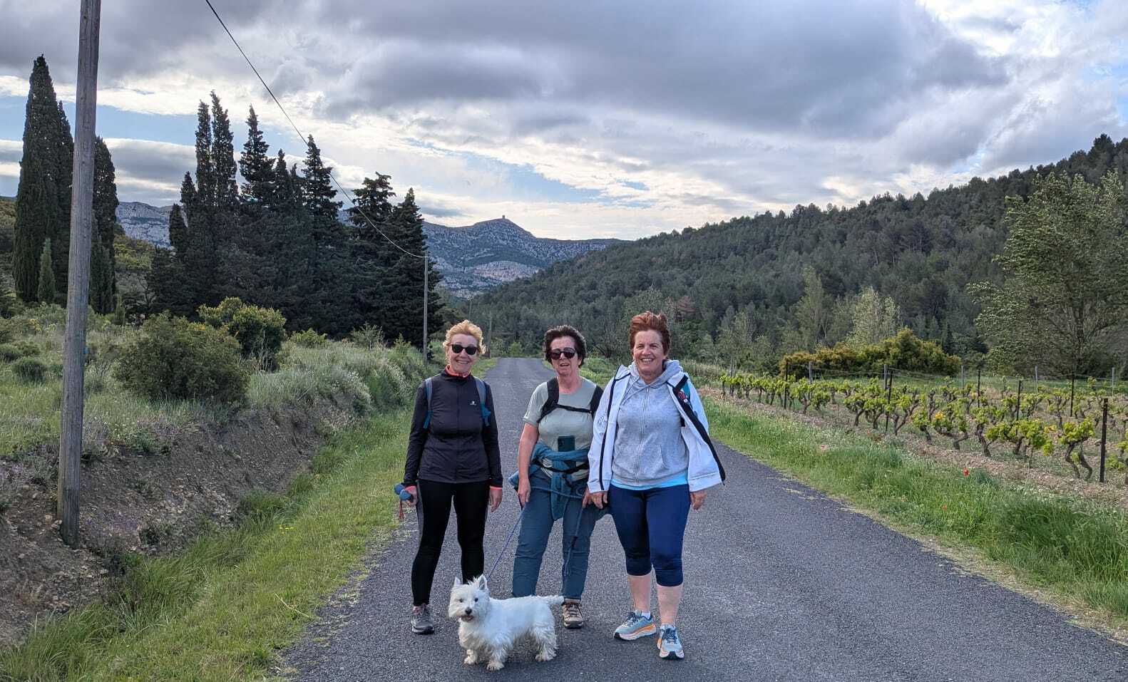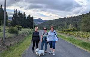 Une 1ière montée longue, régulière, pratiquement sans voiture sur ces coteaux viticoles. Des conditions idéales mais plus haut, le souffle du vent nous calme. Les rafales s’enchainent et nous effraient par leur intensité. Un répit mais au détour d’un virage, rebelote. Allons-nous continuer ? Heureusement, ça se calme un peu par la suite. Cette journée de vélo va nous "sécher". Nous terminons le parcours prévu. Les 3 marcheuses arrivent aussi, fatiguées, avec leurs 16 km dans les jambes.