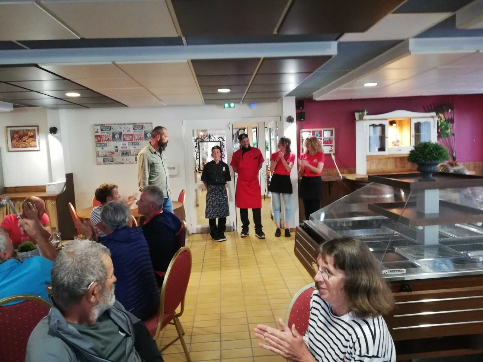 Au pot d’accueil, Stéphane présente sa petite équipe, les lieux de vie, le fonctionnement du centre. Sa voix gutturale plus ou moins forcée nous incite forcément à l’écouter. Les cyclos installés au camping nous ont rejoints. Bien installés, ils sont enchantés; les responsables sont très sympathiques.